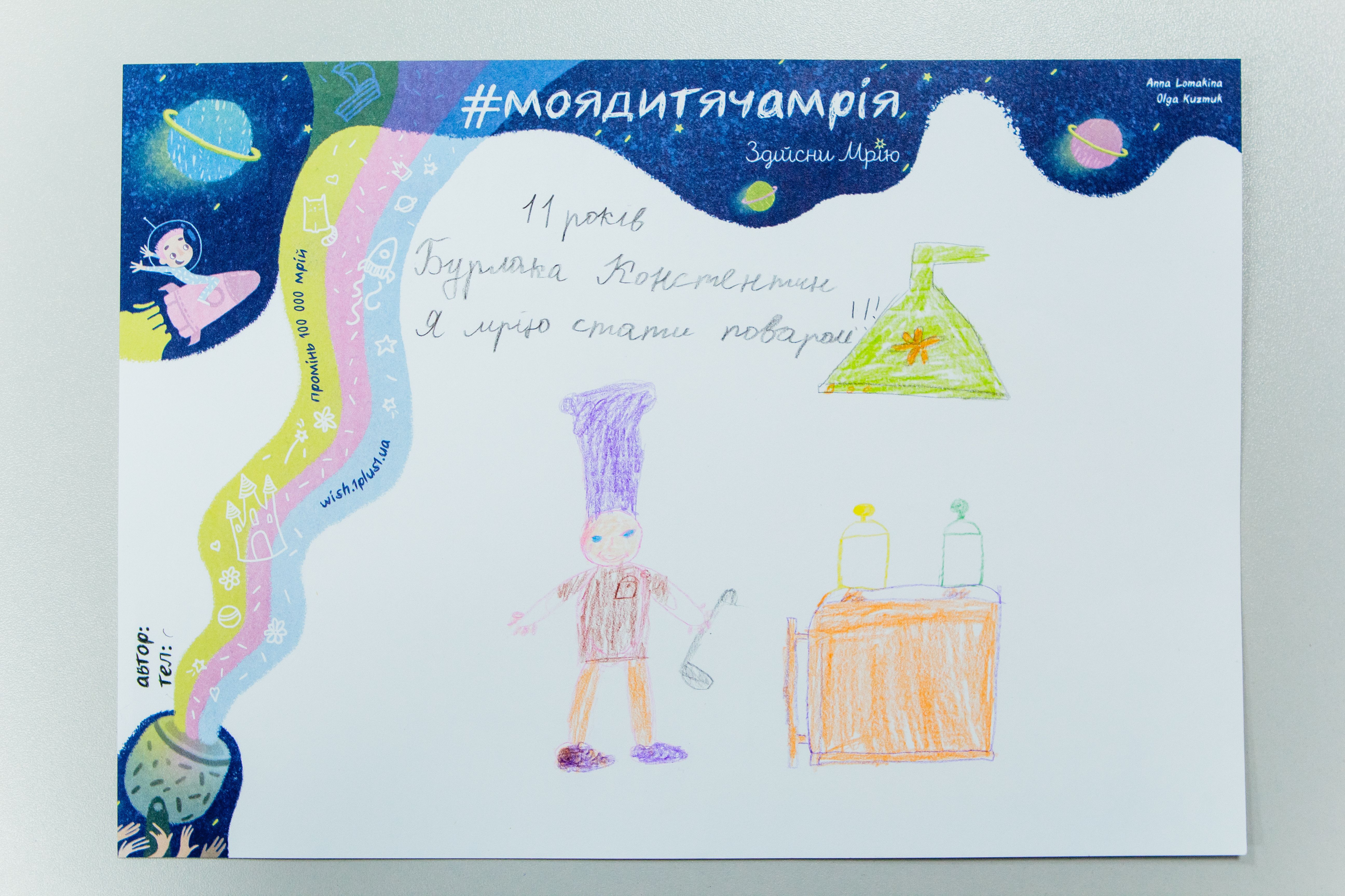 Однажды мальчик решил поучаствовать в арт-марафоне #МояДитячаМрія, который основал проект Здійсни Мрію, и нарисовал свою мечту, на которой изобразил себя в колпаке для повара и написал: «Я хочу стать шеф-поваром».
