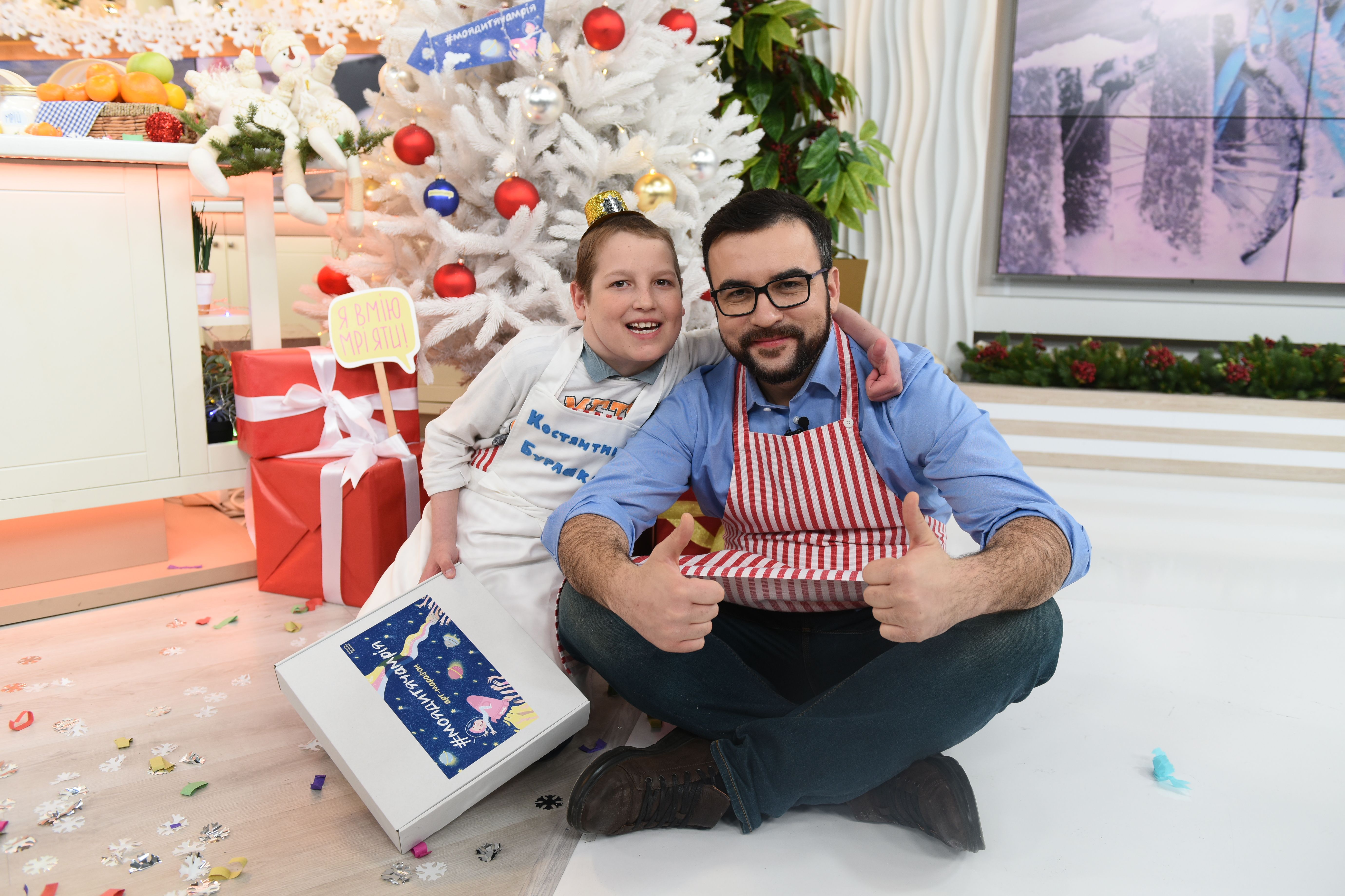 Во время приготовления блюда Костя раскованно чувствовал себя на звездной кухне рядом с телеведущим и ощущал себя настоящим хозяином. Знал, какие ингредиенты необходимы для печенья и в каком количестве, шутил с Сеничкиным и передавал поздравления друзьям.