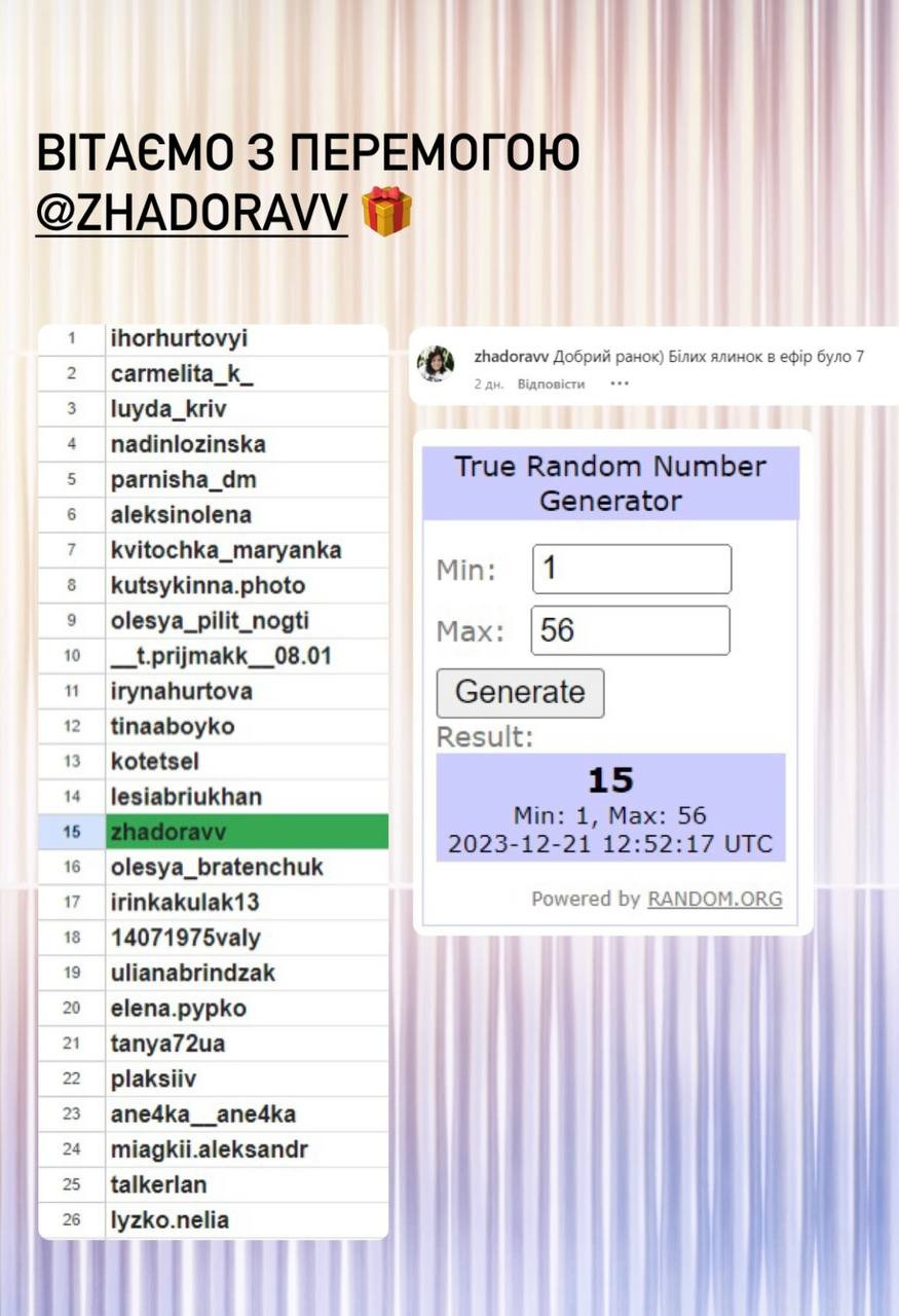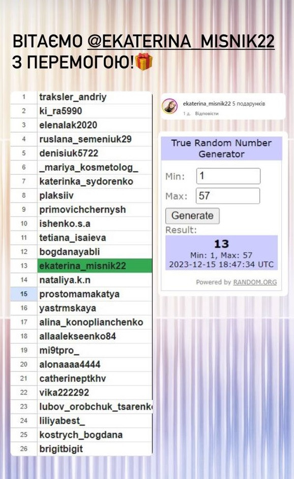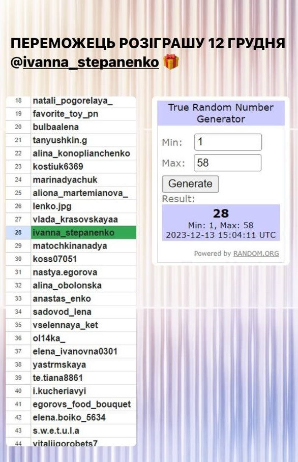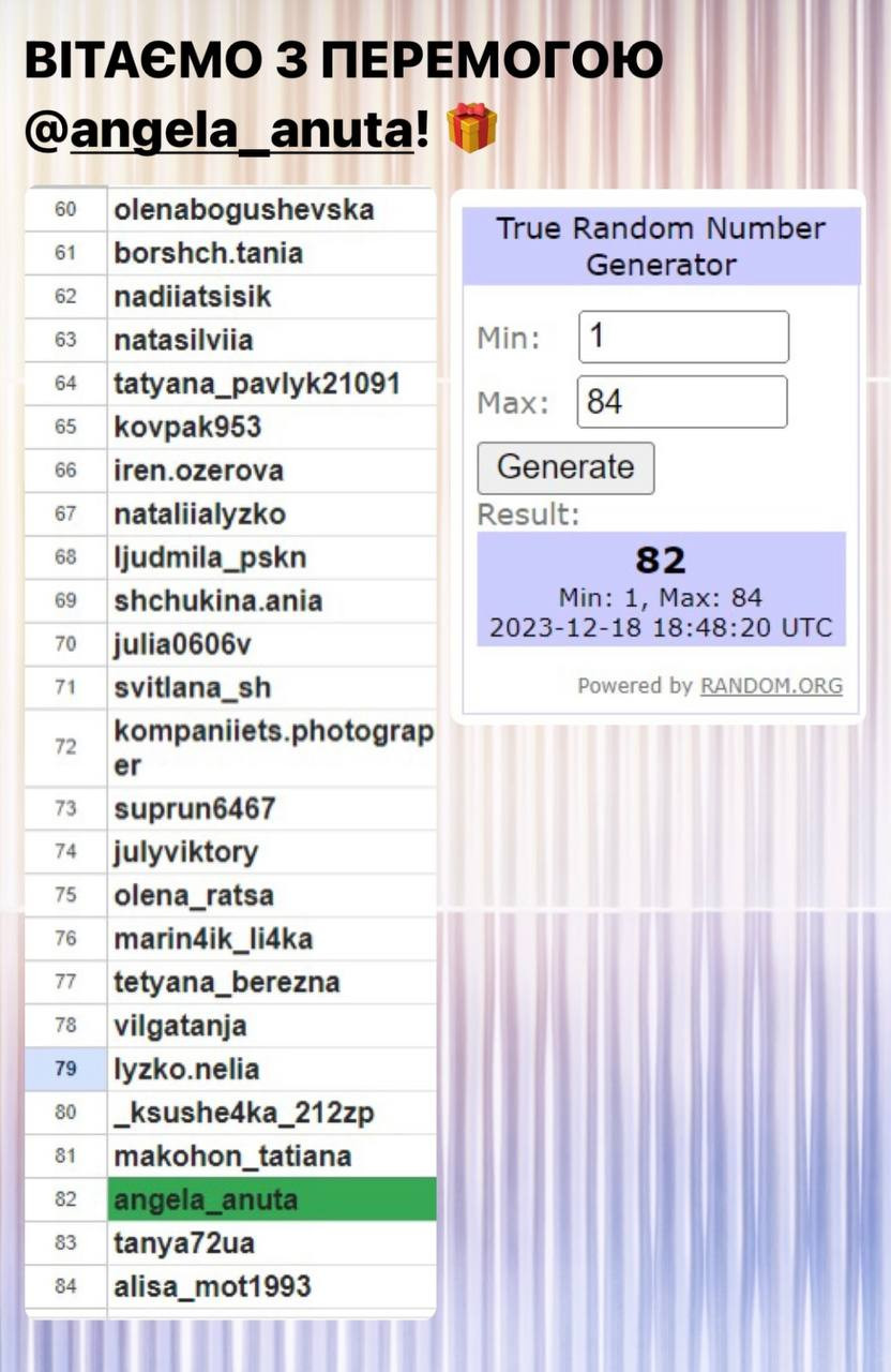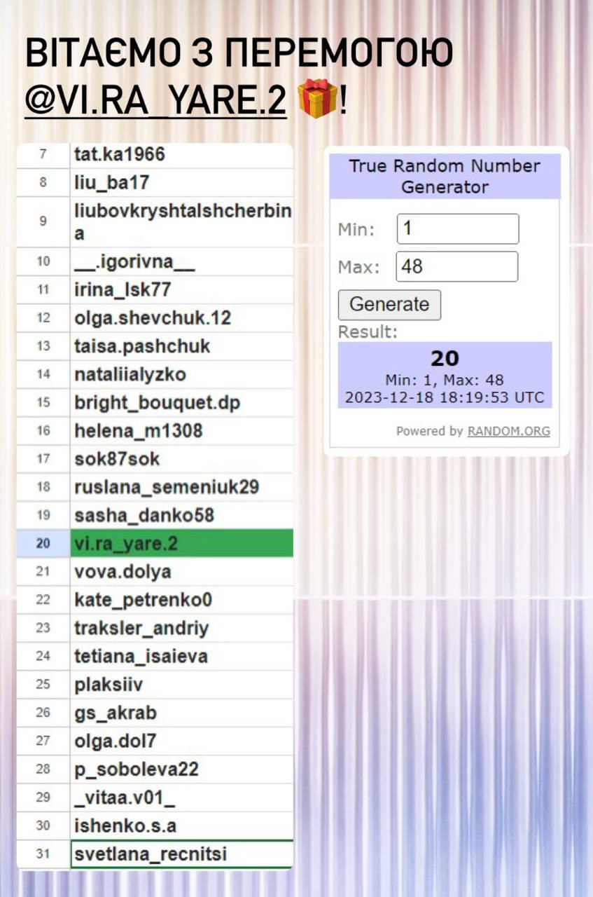 Серед усіх, хто вказав правильну відповідь під конкурсною публікацією, визначається один переможець. Визначення відбувається за допомогою сервісу random.org.