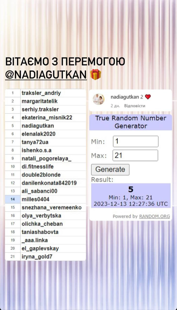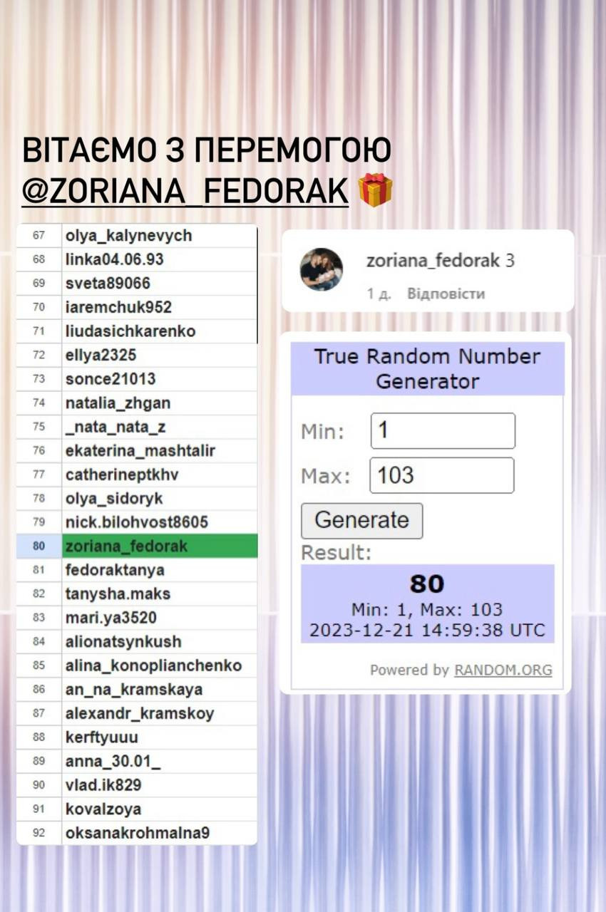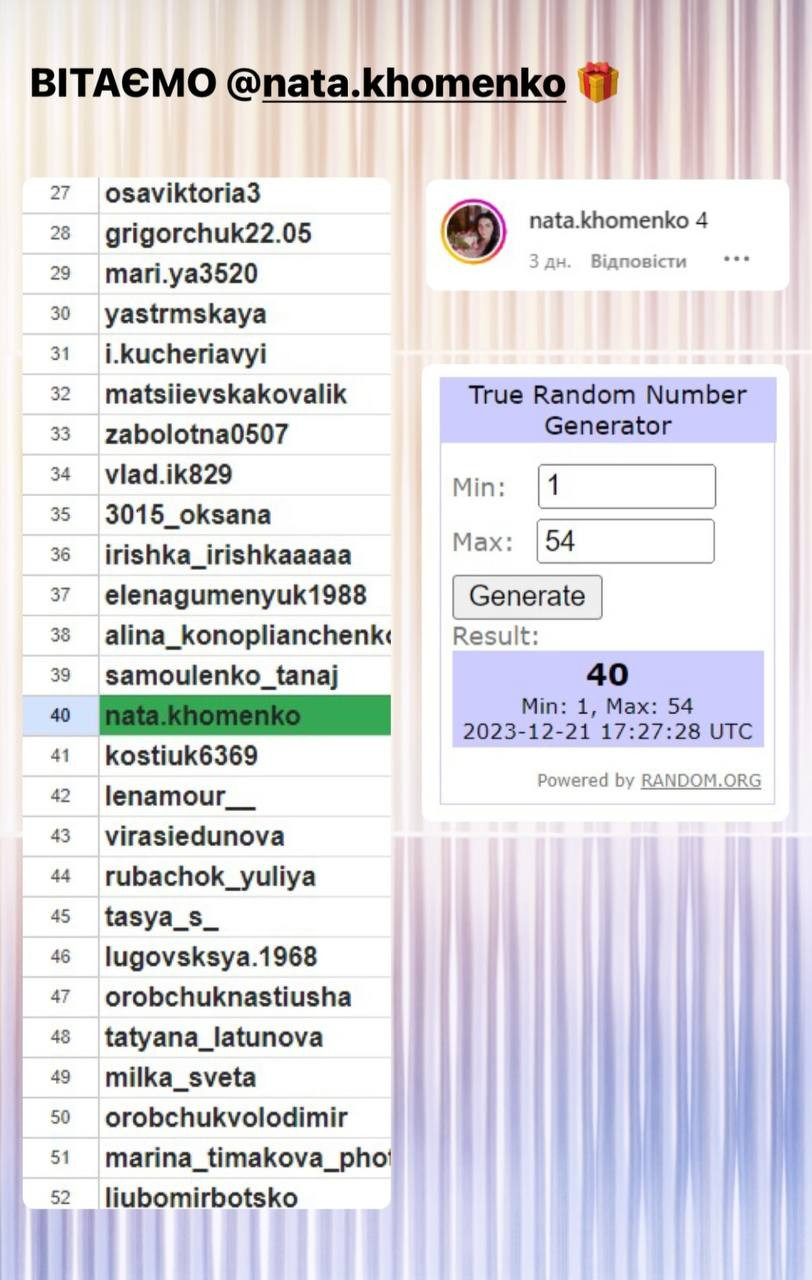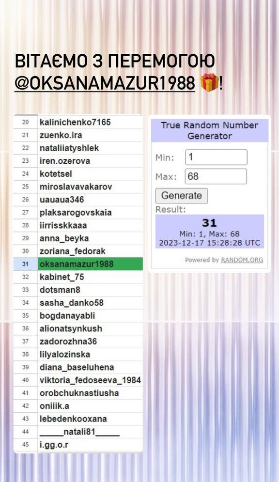 Серед усіх, хто вказав правильну відповідь під конкурсною публікацією, визначається один переможець. Визначення відбувається за допомогою сервісу random.org.