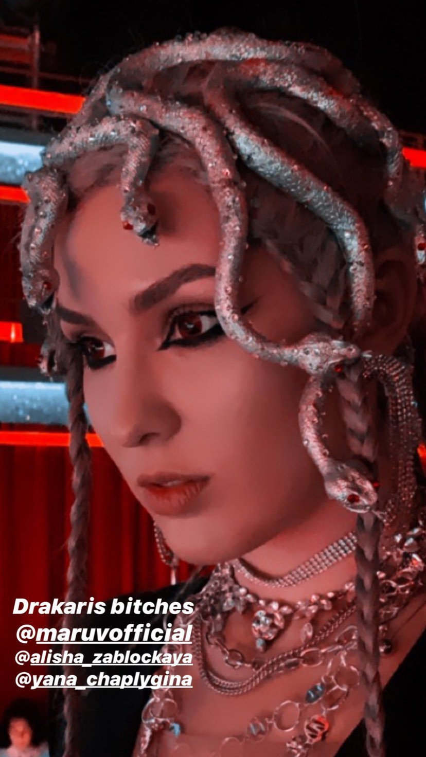 Без внимания нельзя оставить и образ MARUV, в котором она пришла на мистический балл танцевального шоу. Певица перевоплотилась в дочь бога моря Медузу Горгону - со змеями на голове и очень, кстати, соблазнительную.