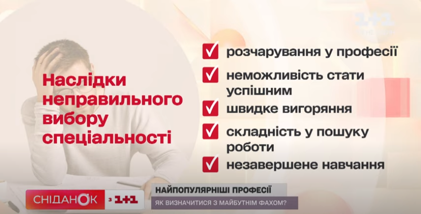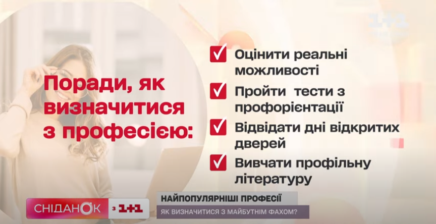 Сейчас самый жаркий сезон для поступающих – начата подача электронных заявлений в ЗВО через электронные кабинеты абитуриентов. И что же делать, если до сих пор не определился с будущей профессией? Как выбрать так, чтобы дело нравилось и был хороший заработок? Карьерная консультантка Вера Проценко ответила на эти вопросы в студии дневного шоу "Твой день".