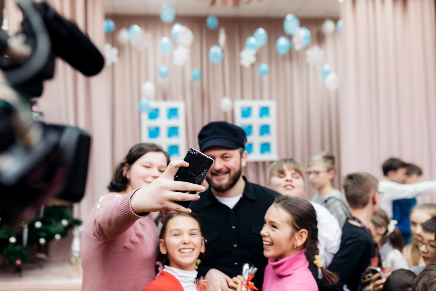 Дети остались в восторге и от сериала, и от общения с исполнителем главной роли. После просмотра они долго не отпускали артиста: обнимались, делали совместные фото, подписывали открытки и делились впечатлениями от комедии.