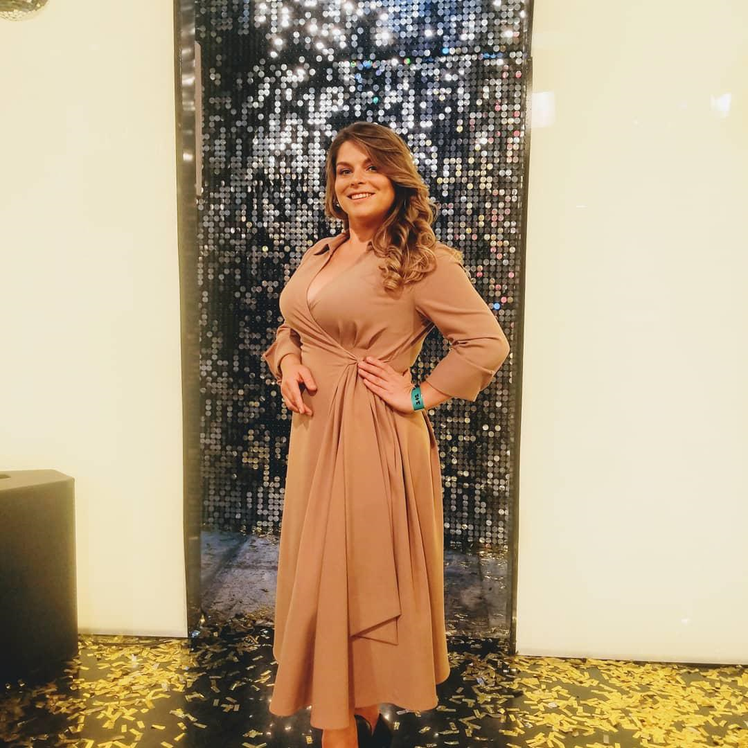 Ведуча зупинила свій вибір на відтінку крем-брюле. Як і вся бежева палітра, він має благородний та завжди доречний вигляд, а до того ж — один із наймодніших цієї осені. Сама Неля Шовкопляс не приховала захвату від свого красивого образу: