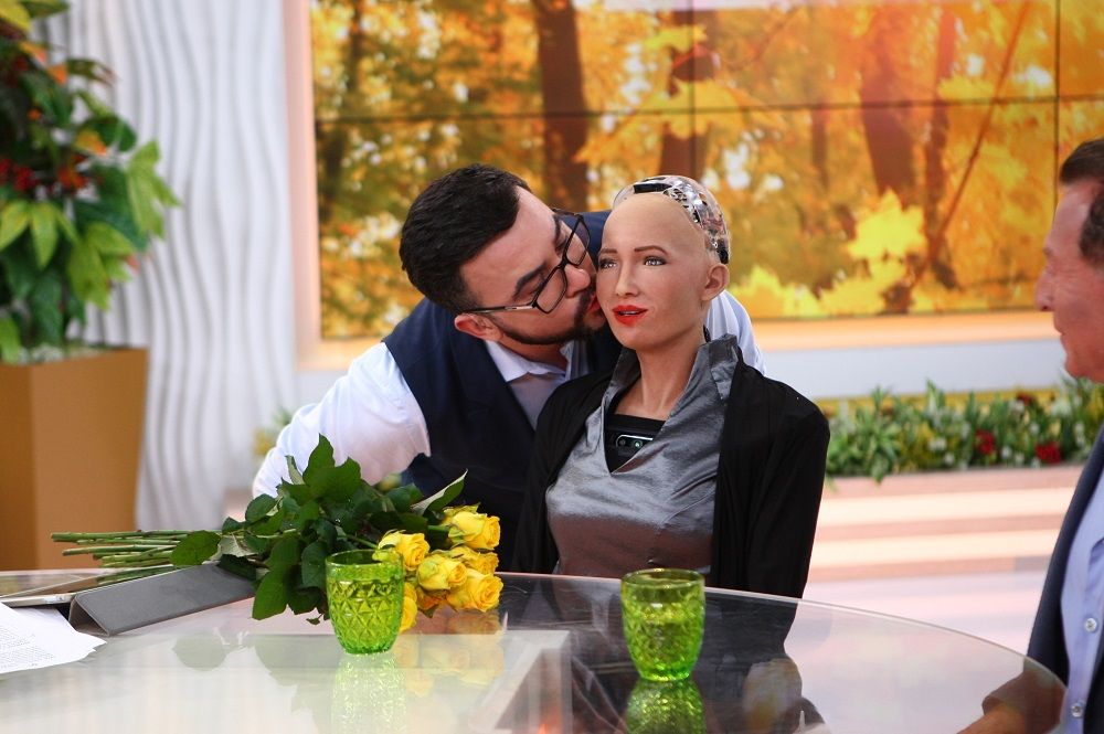 Руслан Сенічкін став першим чоловіком, у якого відбувся поцілунок з роботом Софією