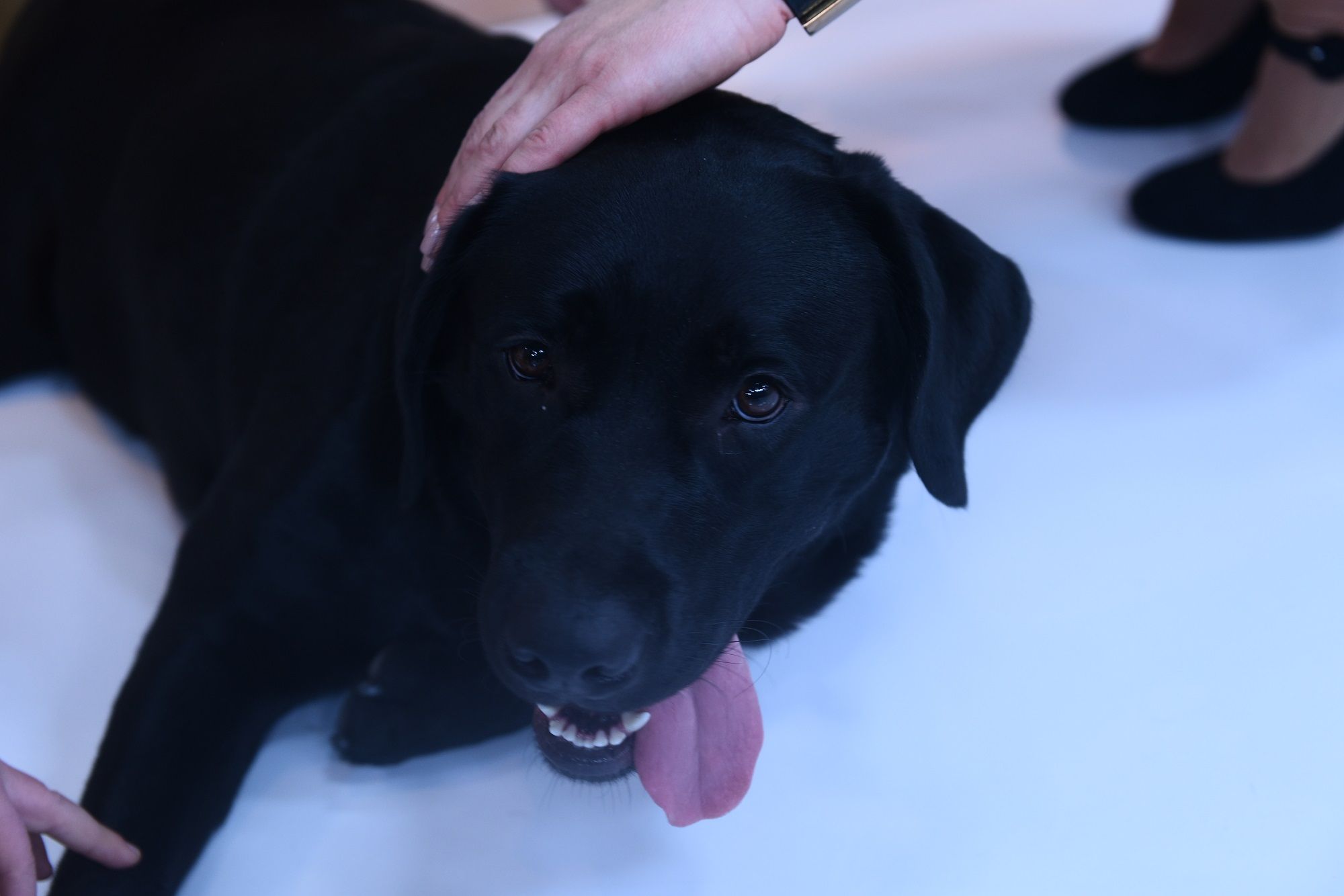 Щеня, якому вже 10 місяців, з'явився разом зі своїми вже новими господарями - Оленою і її сином Глібом в студії Сніданку з 1+1 в прямому ефірі.