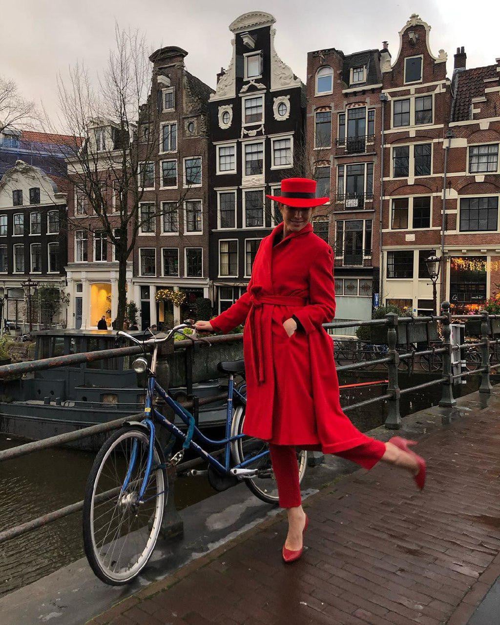 Катя Осадча у total red образі додала барв похмурому Амстердаму