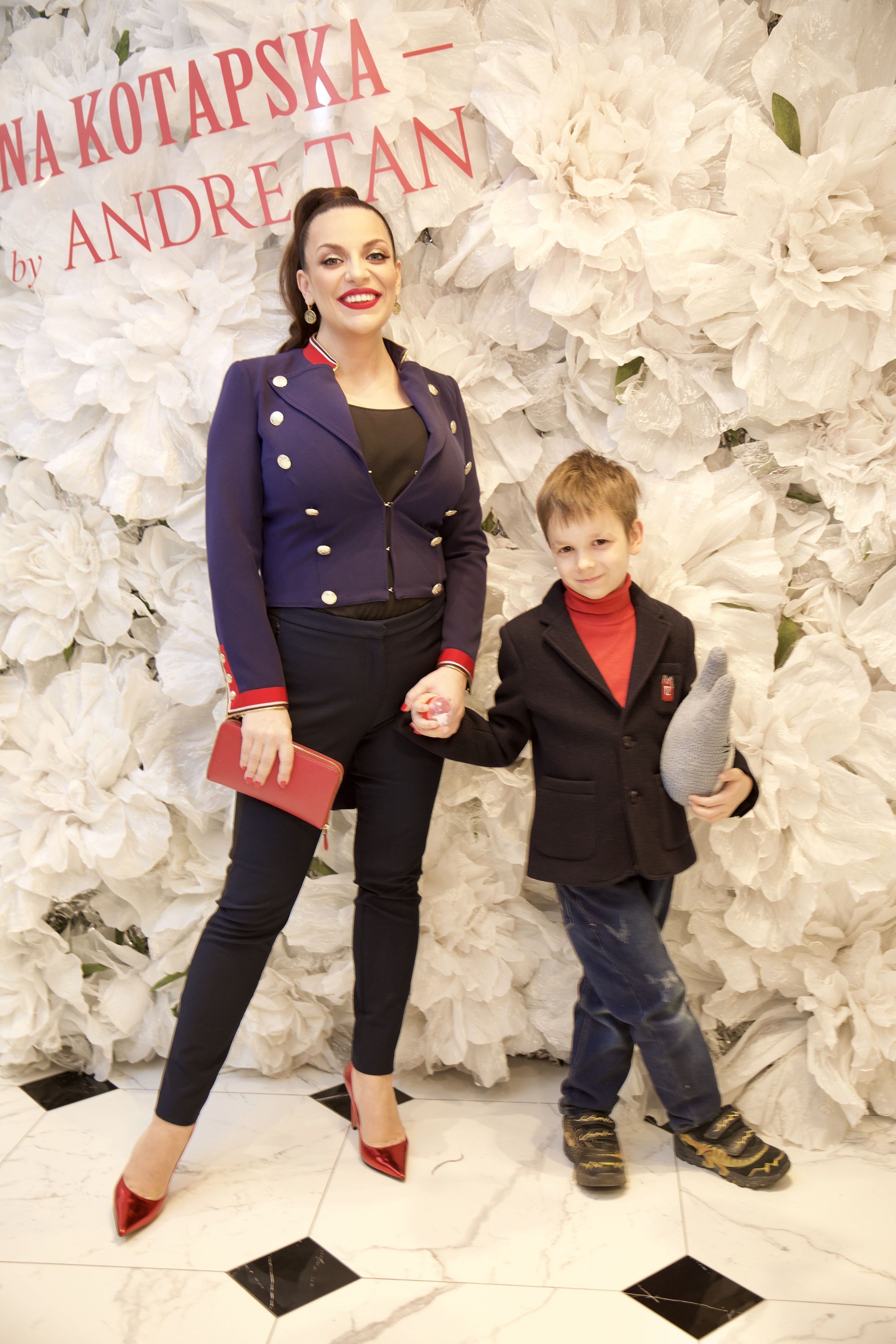articleContentПсихолог підкреслила струнку фігуру обтислими темно-синіми брюками, чорним топом і синім жакетом у гусарському стилі. Доповнила образ Наталя червоним клатчем і туфлями-човниками в тон. Також зірка обрала кокетливий вечірній макіяж з червоною помадою та стрілками на очах.