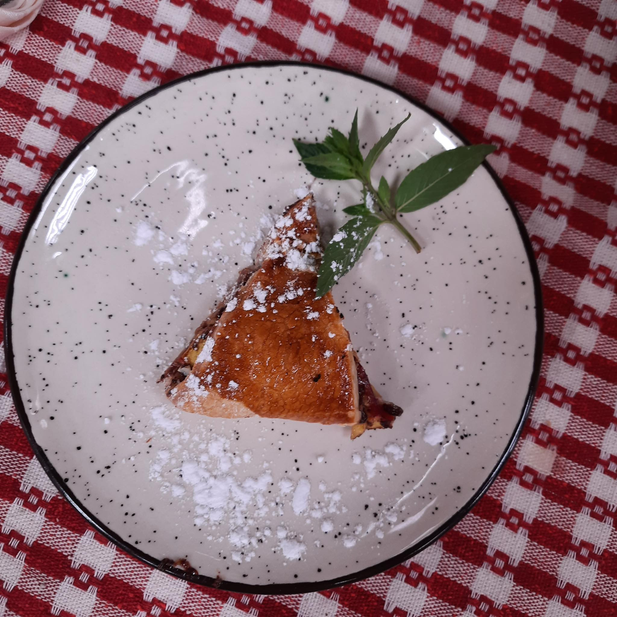 ►Загорнути трикутнички гострими кутами до центру, утворивши коло. Таким чином начинка опиниться під тістом.