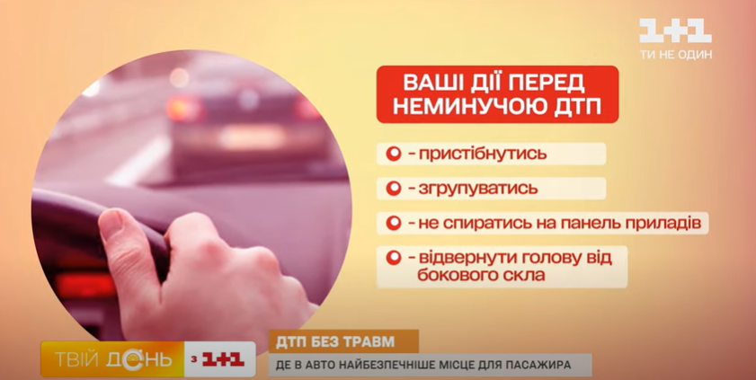 Яке місце в автомобілі найбезпечніше і чому? Де навпаки краще не сідати? Якщо пасажир розуміє, що ДТП не уникнути, то що йому потрібно зробити, щоби отримати менше травм і вижити? Про все це говорили у програмі "Твій день" з пані автоінструктором і керівницею жіночої школи водіння Ольгою Байбородіною.