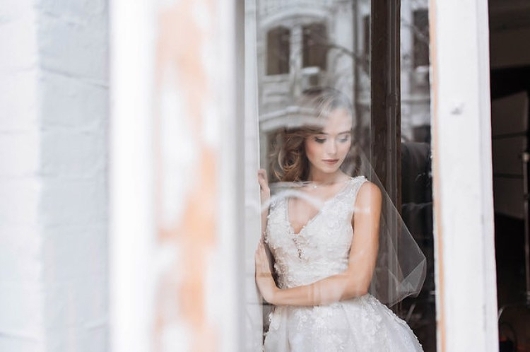 На ніжному знімку добре видно верхню частину сукні та надлегку прозору фату. Вбрання рясно оздоблене мереживом, тож у зачісці й прикрасах Анна вирішила надати перевагу мінімалізму.